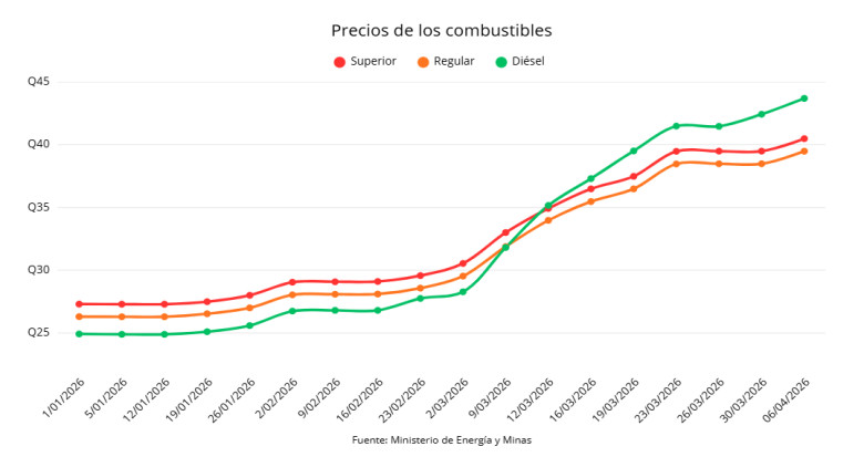 El diésel acumula un alza de Q18.77 desde enero, mientras las gasolinas suben más de Q13.