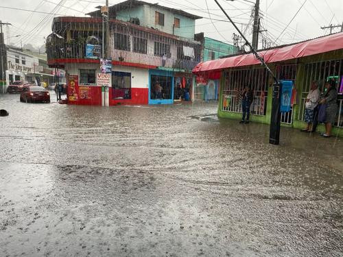 Inundación en Villa Hermosa, San Miguel Petapa, tras crecida de río cercano y tragantes tapados.