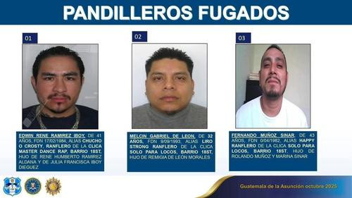 Otros fugados incluyen alias como “Cartoon”, “Rabit”, “Monstruo”, “Inquieto”, “Litle Men”, “Yoker”, “Wicked”, “Brown”, “Liro Spyder” y “Spyder”, todos con antecedentes por delitos graves.