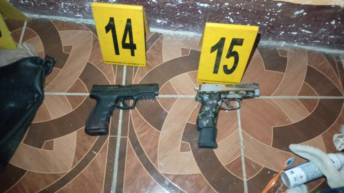 El parte policial indica que los detenidos son un hombre y una mujer, presuntos integrantes de la pandilla Barrio 18. Entre los objetos incautados figuran dos pistolas y zapatos con manchas de sangre.