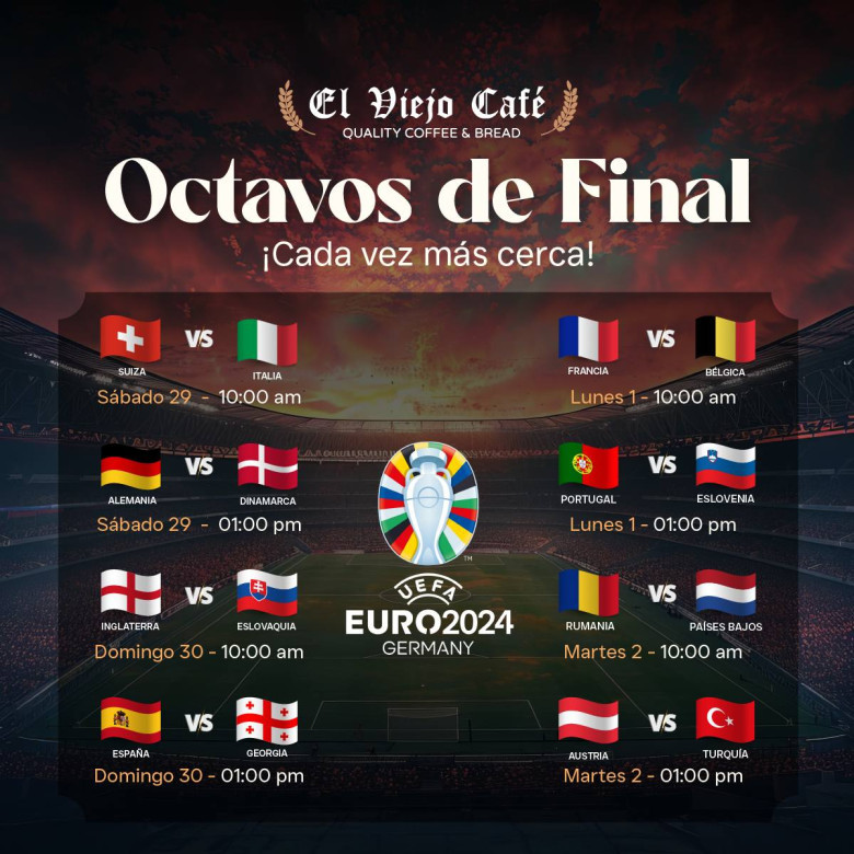TOP's ⚽ ¡La Jornada de Octavos de Final de la UEFA Eurocopa 2024 ya está aquí! ⚽ El Viejo Café editor posteado hace 1 año Ven y disfruta de todos los partidos en El Viejo Café. Vive la emoción del fútbol con una buena taza de café y el mejor ambiente. ¡Te esperamos para celebrar cada gol juntos! ☕️🎉 Síguenos en nuestras redes sociales Facebook Instagram Cómo llegar futbol copa america jornada 3 El Viejo Café seguir El histórico café de La Antigua Guatemala, sirviendo con amor desde 1998. Comentarios Comment 0 comment Best Oldest Newest Write the first comment for this!