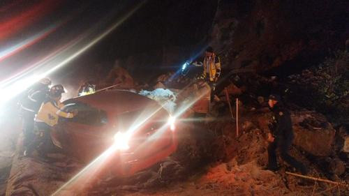 Un derrumbe se registró la madrugada del martes 3 de febrero en el kilómetro 61 del Libramiento de Chimaltenango, afectando a un vehículo tipo sedán que transitaba por el sector.